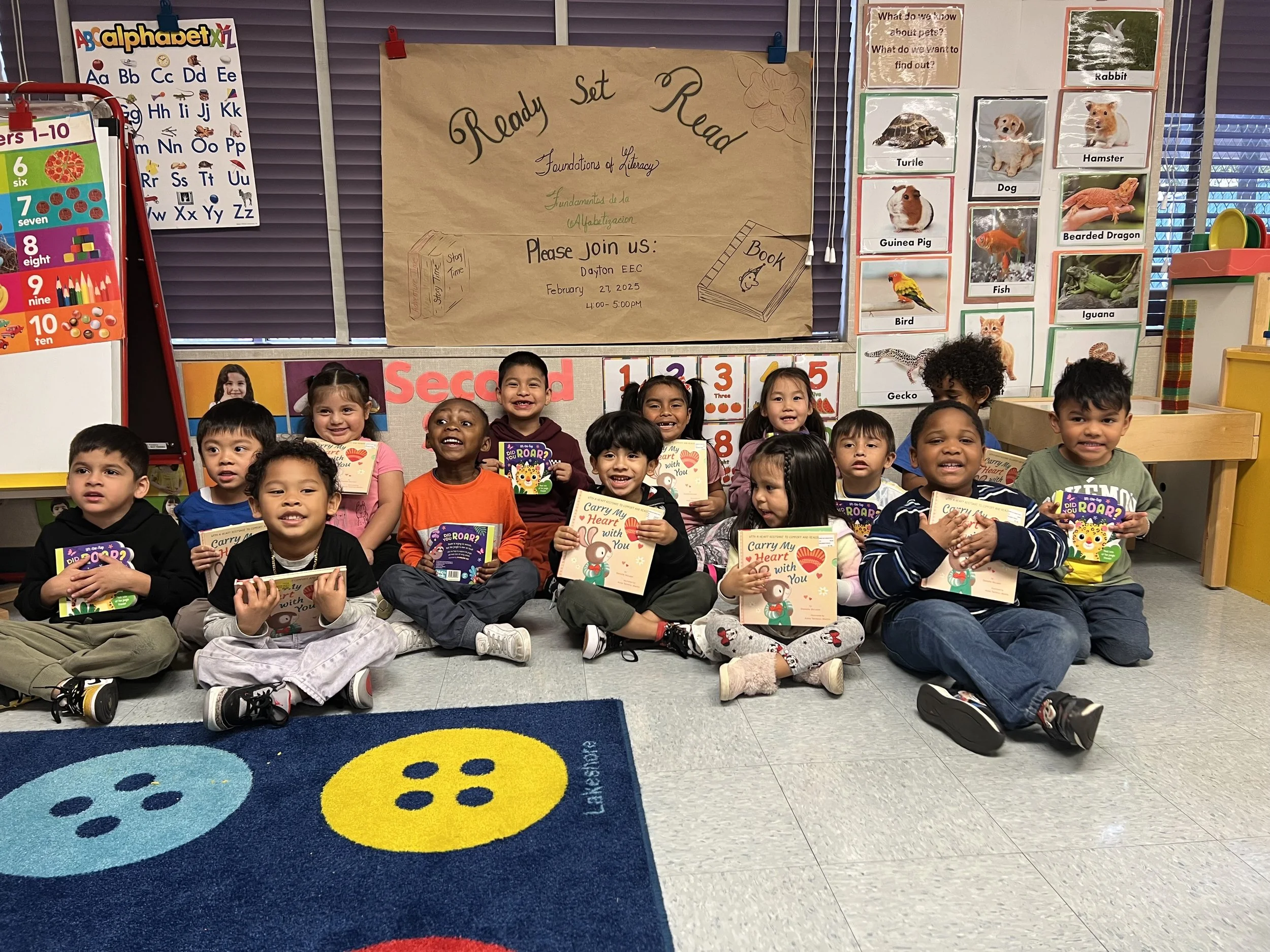 Ready, Set, Read! provides children with new, bilingual books to build their home libraries. Focused on high-quality and diverse books, our selections include stories that are windows and mirrors, offering opportunities for children to learn about the world and see themselves reflected back, respectively. We take pride in ensuring families receive books that they’ll enjoy in the days and years to come. In addition, we provide partner schools with classroom collections of books for in-school story time.